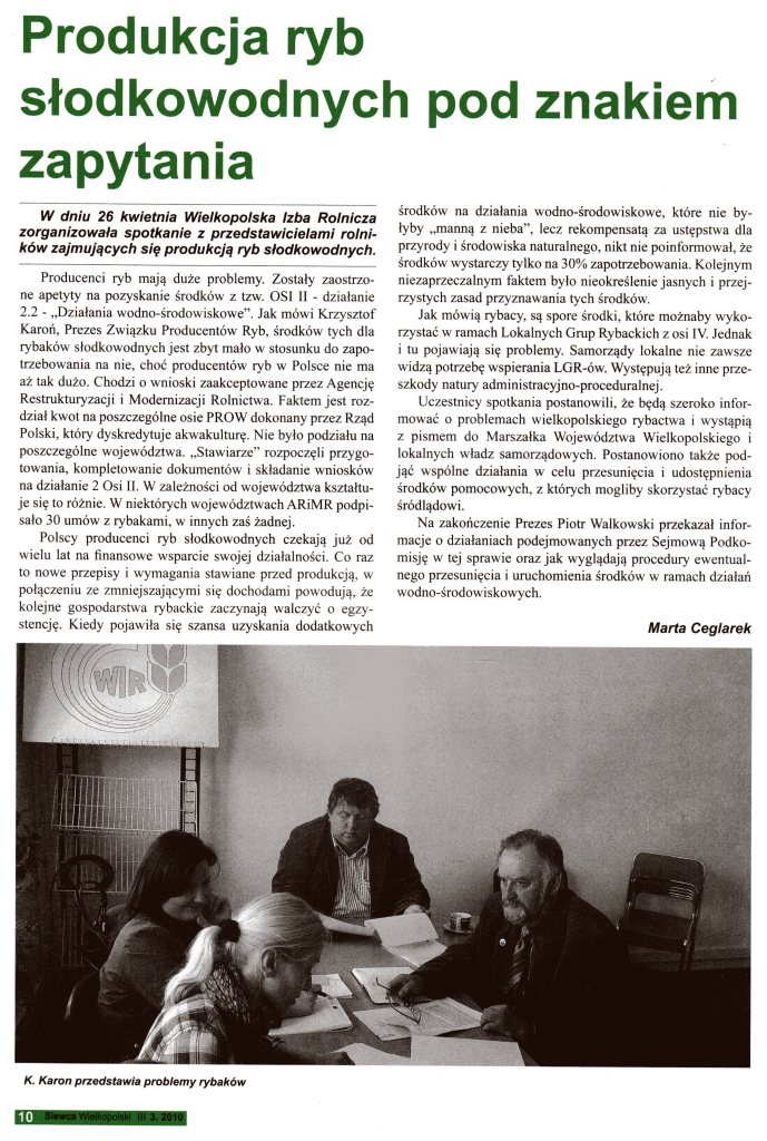 • pozostawienia bez jakiejkolwiek pomocy merytorycznej i finansowej, dużej ilości upadających gospodarstw karpiowych, dotkniętych chorobą KHV karpi;