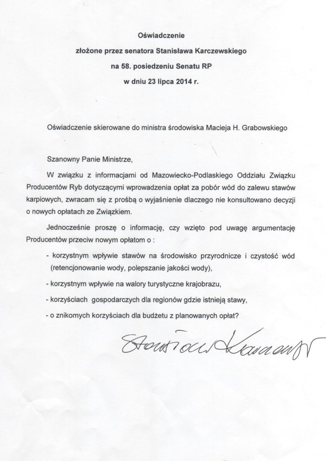 1. Senator S. Karczewski - oświadczenie>>>>>