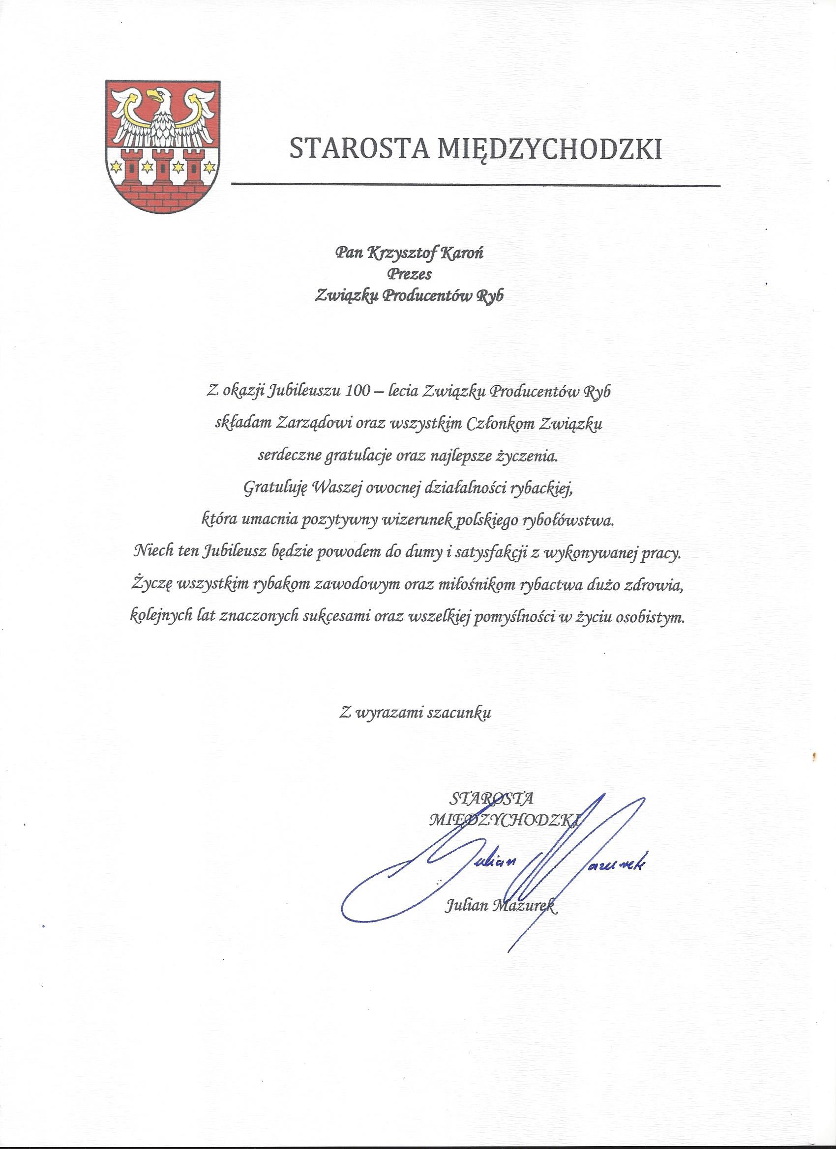 - Starosta Międzychodzki – Julian Mazurek,