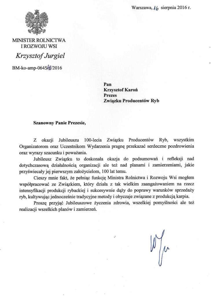 - Minister Rolnictwa i Rozwoju Wsi – Krzysztof Jurgiel,