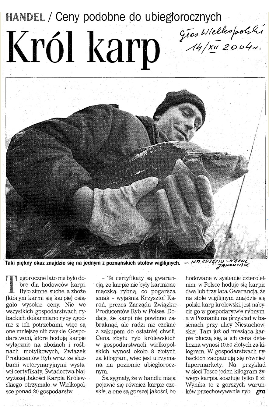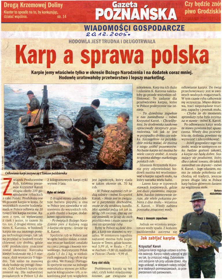 Zakupienie karpi z Gospodarstw Rybackich posiadających powyższy certyfikat jest gwarancją wyśmienitego smaku spożywanych karpi podczas Wieczerzy Wigilijnej!